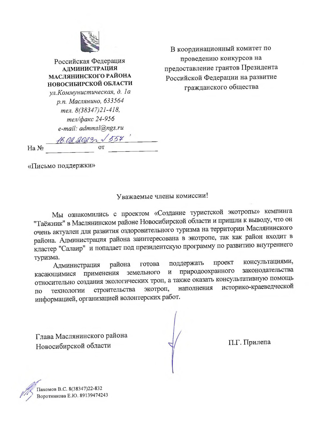 На этой странице вы можете прочитать благодарственные и письма поддержки нашего проекта. Наша цель - создание оборудованной экотропы, делающей доступным, безопасным, интересным и познавательным семейный и детский отдых, в экологически чистом и красивом горно-лесном ареале Маслянинского района.