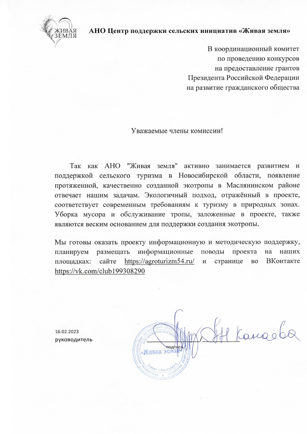 На этой странице вы можете прочитать благодарственные и письма поддержки нашего проекта. Наша цель - создание оборудованной экотропы, делающей доступным, безопасным, интересным и познавательным семейный и детский отдых, в экологически чистом и красивом горно-лесном ареале Маслянинского района.